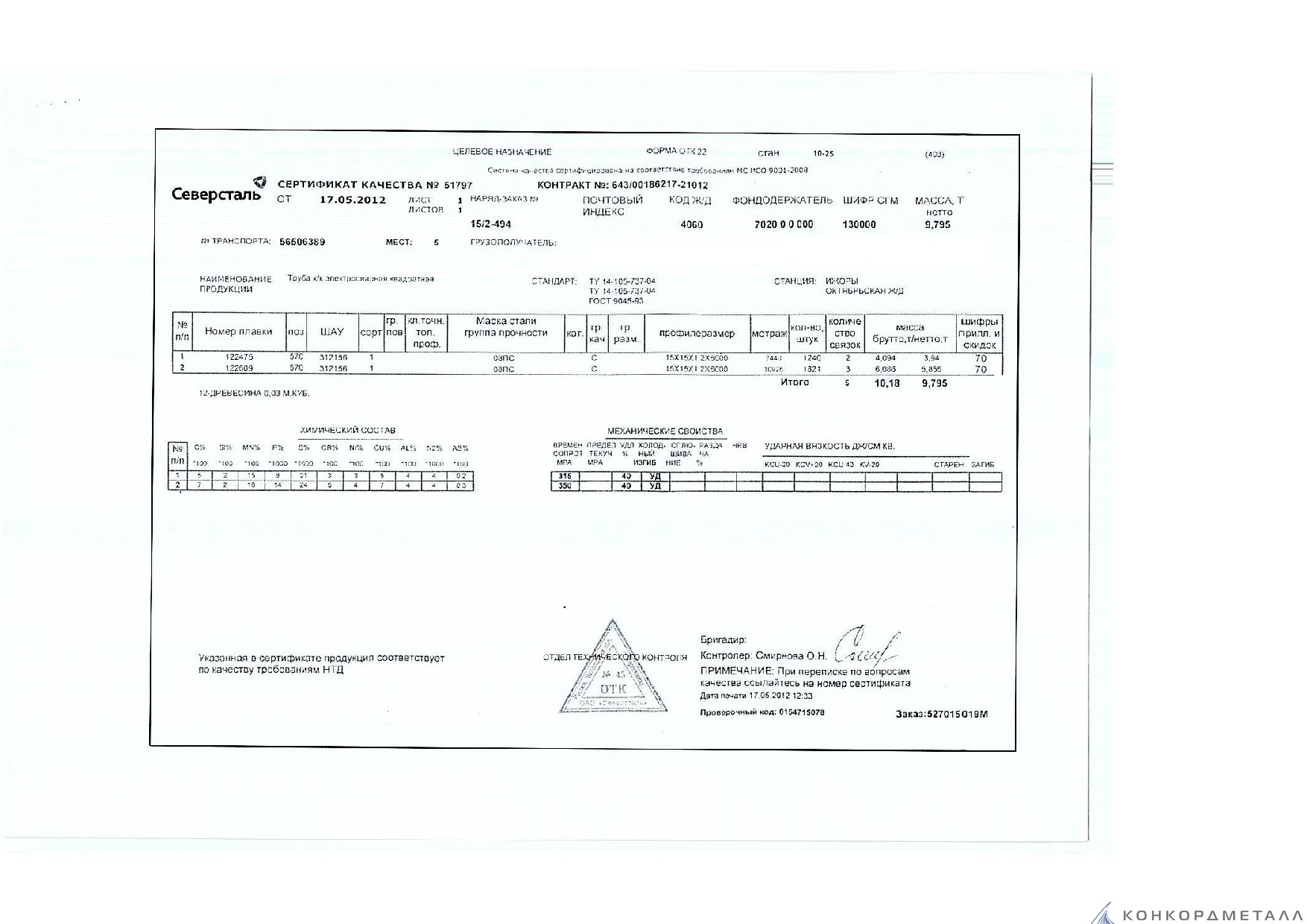 С каждой товарной позицией мы предоставляем все сертификаты и паспорта качества, а также товарно-транспортную накладную.