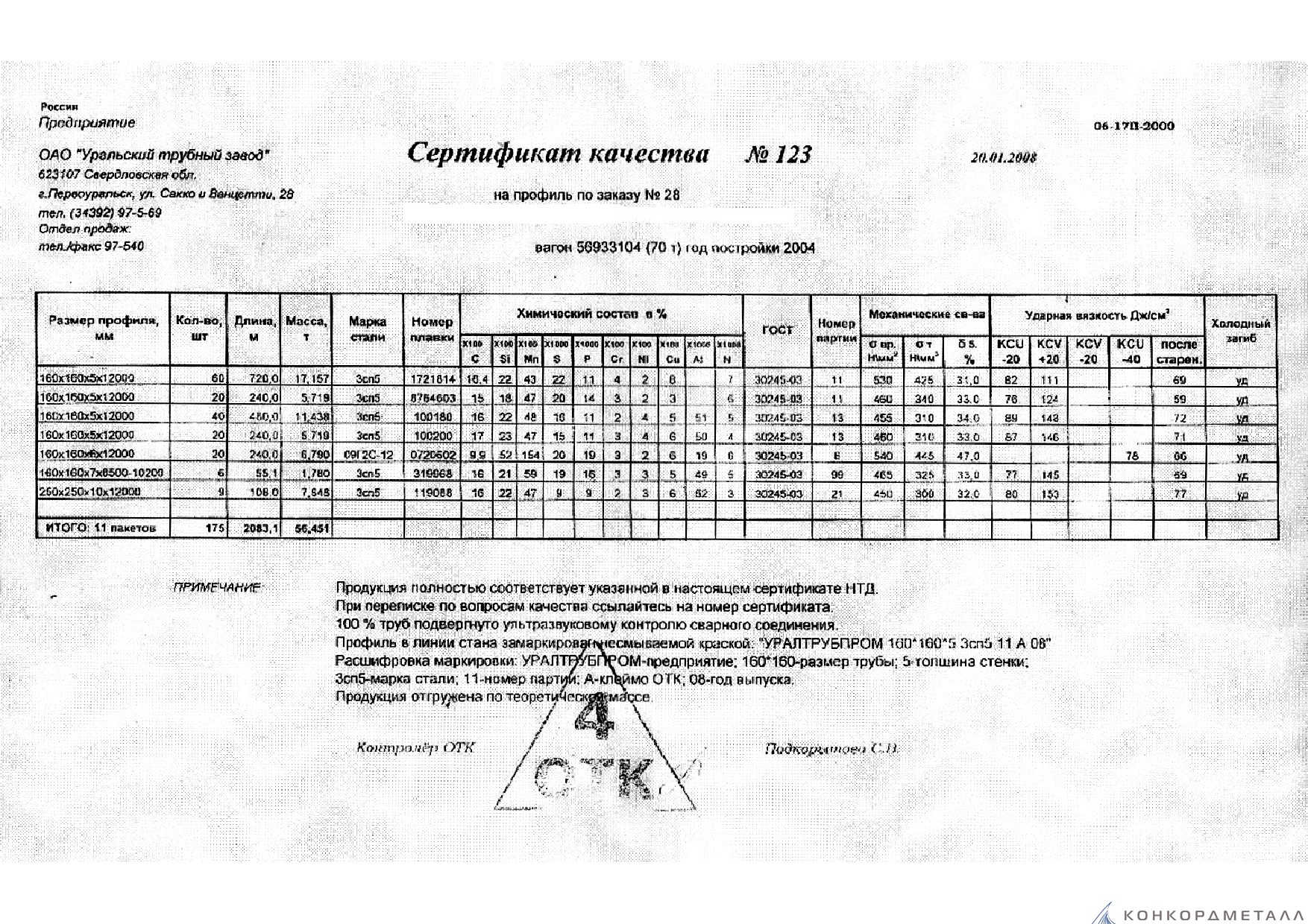 С каждой товарной позицией мы предоставляем все сертификаты и паспорта качества, а также товарно-транспортную накладную.