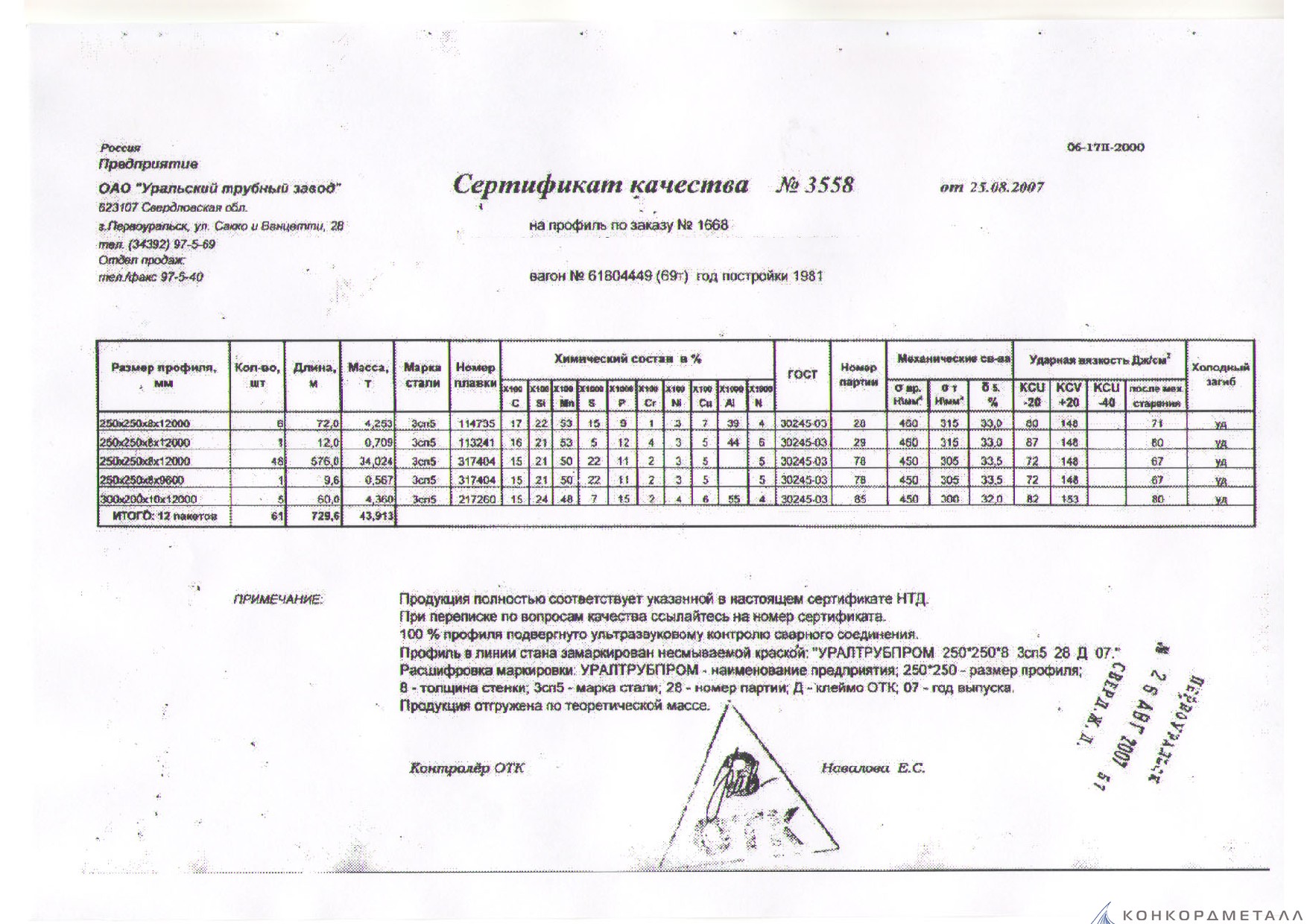 С каждой товарной позицией мы предоставляем все сертификаты и паспорта качества, а также товарно-транспортную накладную.