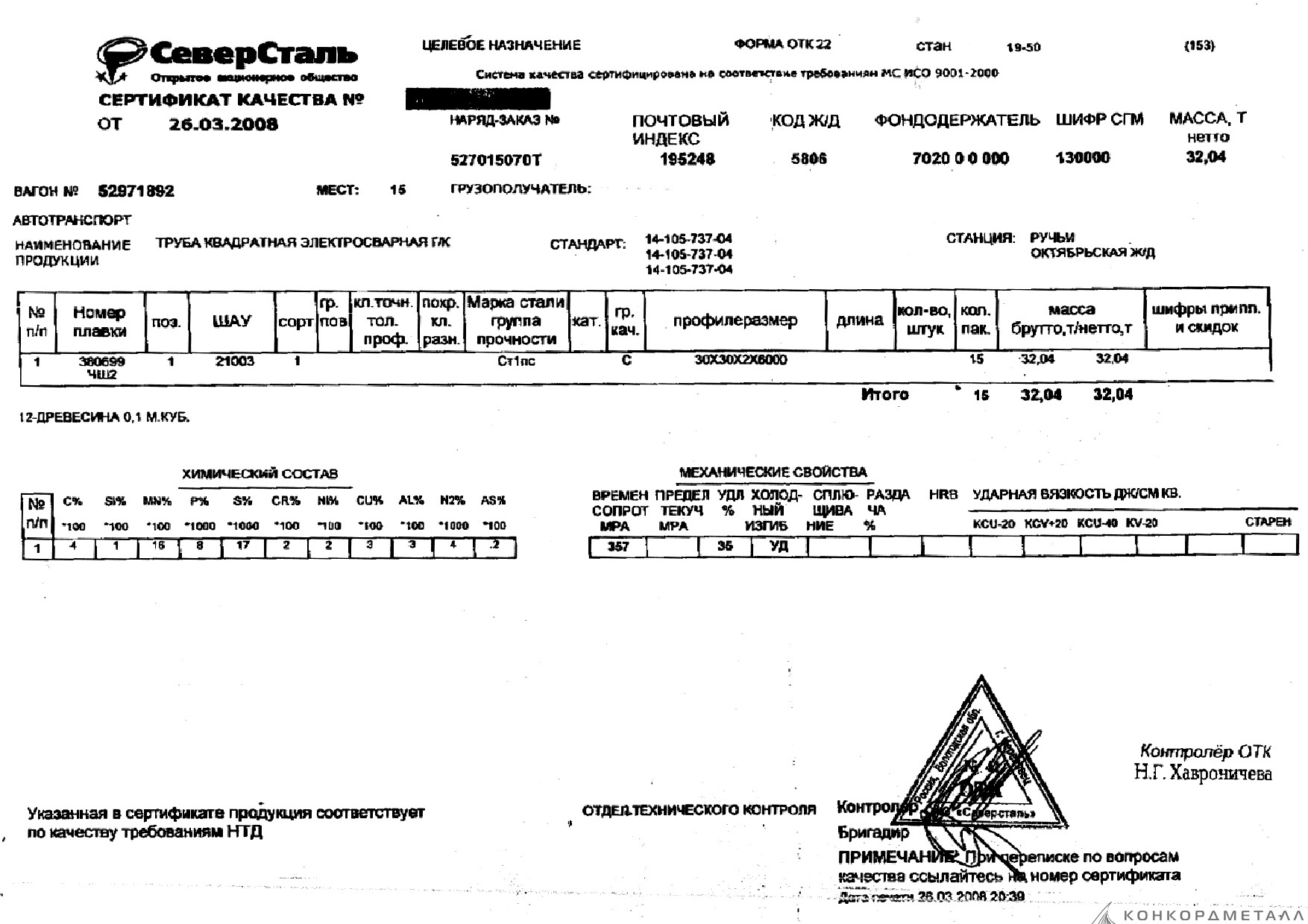 С каждой товарной позицией мы предоставляем все сертификаты и паспорта качества, а также товарно-транспортную накладную.