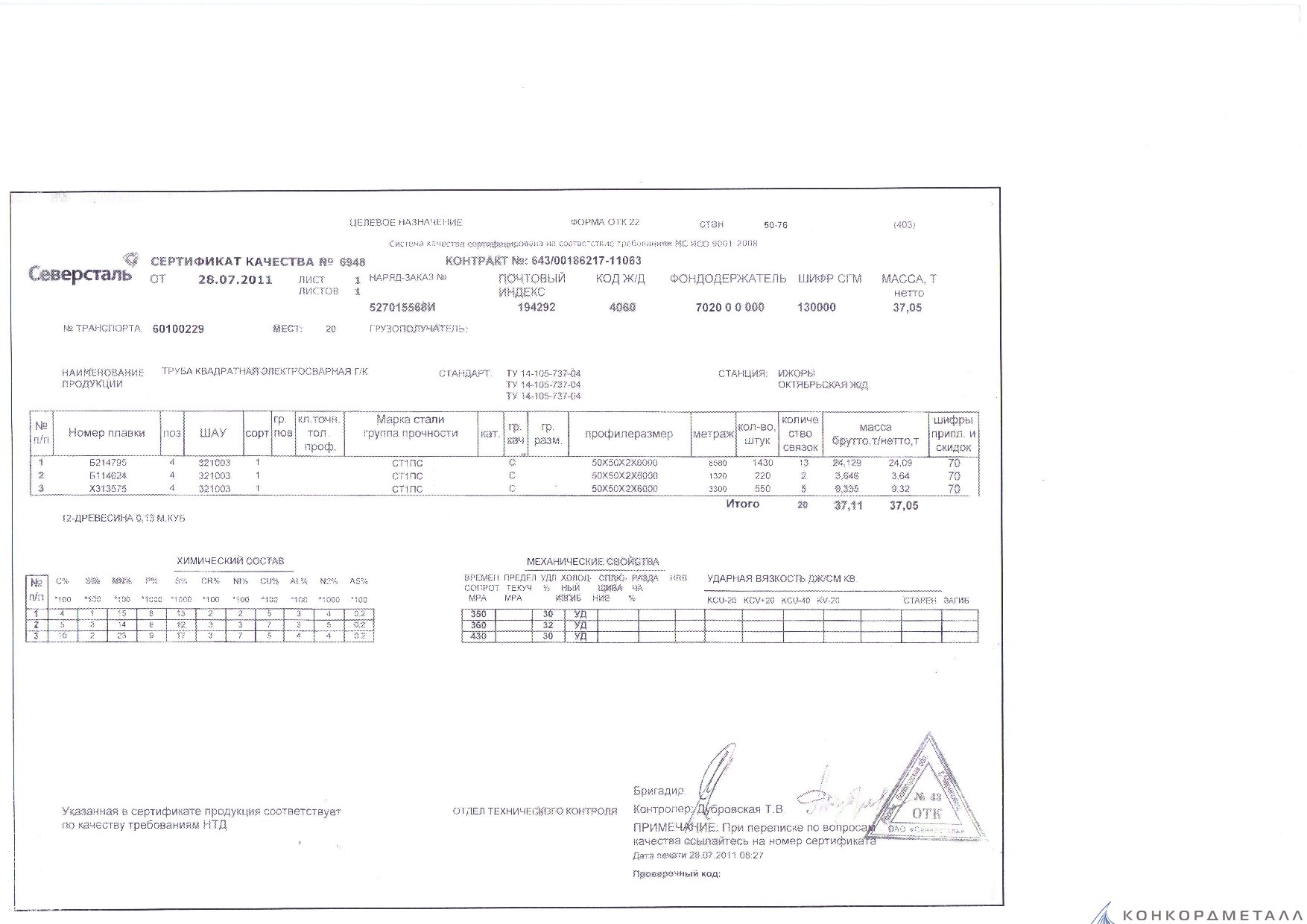 С каждой товарной позицией мы предоставляем все сертификаты и паспорта качества, а также товарно-транспортную накладную.