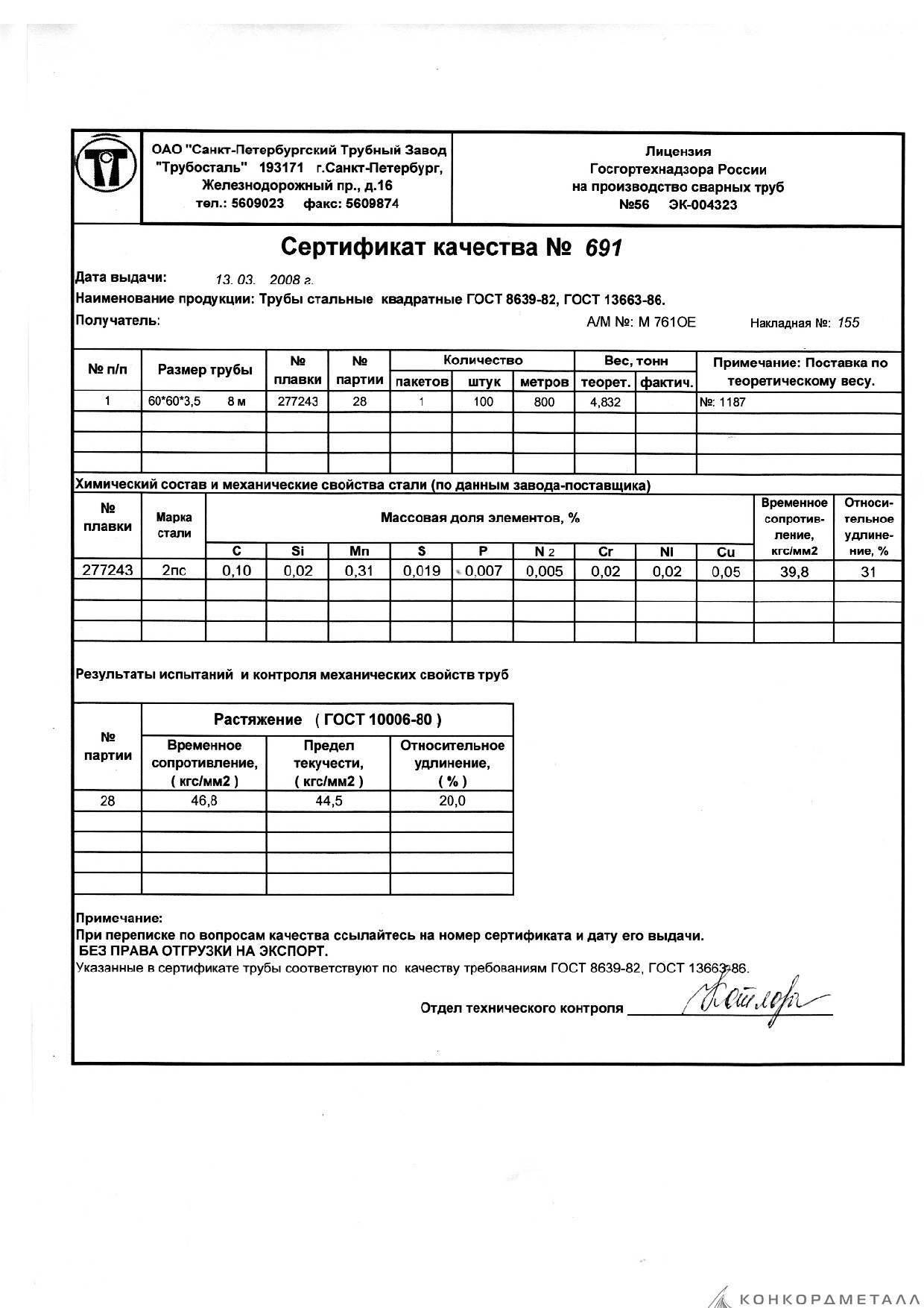 С каждой товарной позицией мы предоставляем все сертификаты и паспорта качества, а также товарно-транспортную накладную.