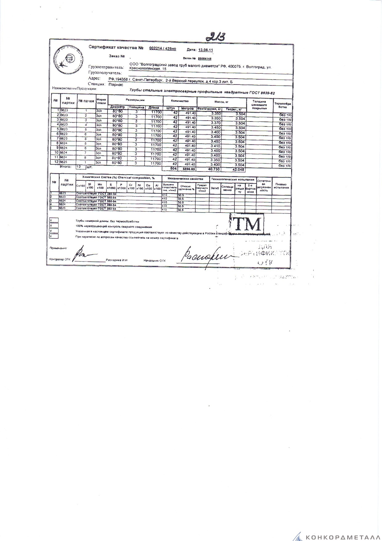 С каждой товарной позицией мы предоставляем все сертификаты и паспорта качества, а также товарно-транспортную накладную.