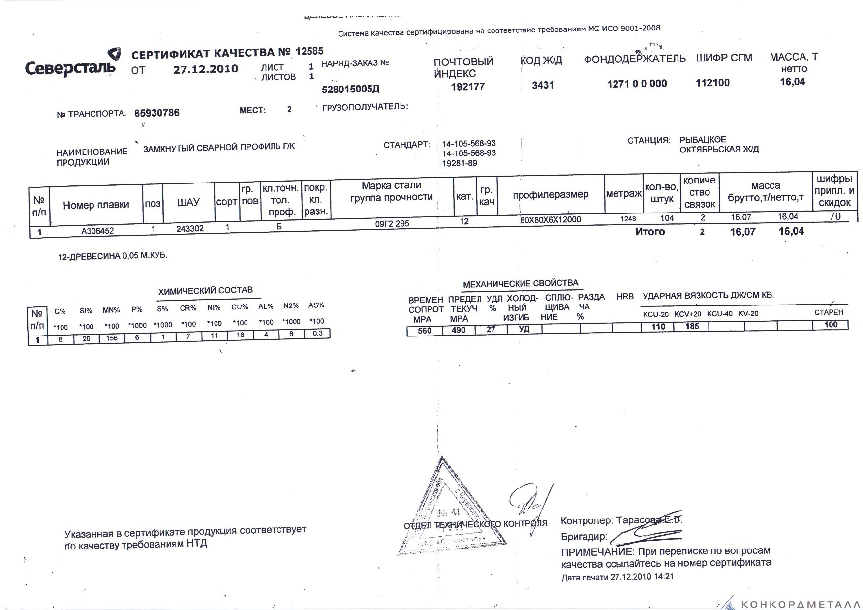 С каждой товарной позицией мы предоставляем все сертификаты и паспорта качества, а также товарно-транспортную накладную.