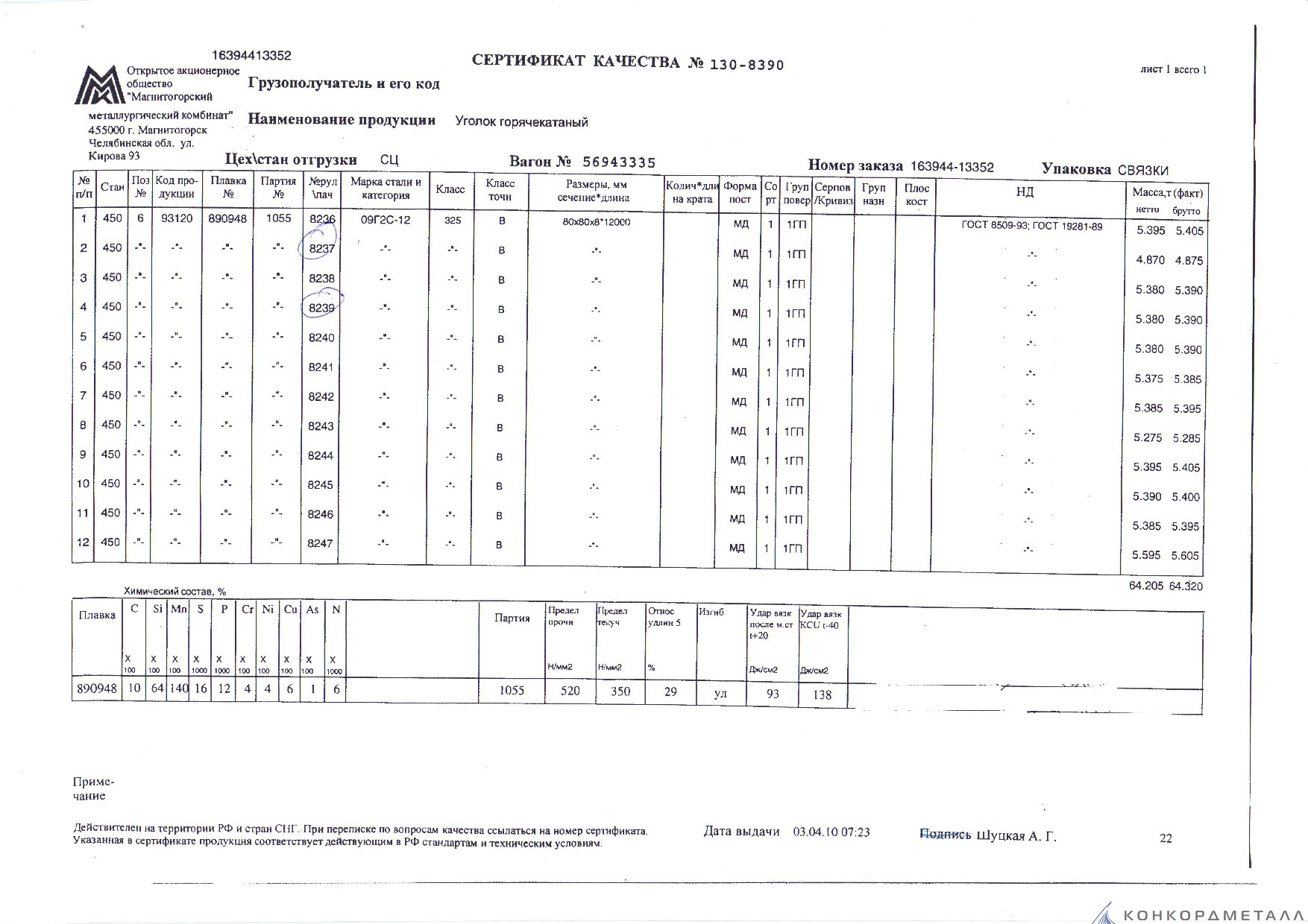 С каждой товарной позицией мы предоставляем все сертификаты и паспорта качества, а также товарно-транспортную накладную.