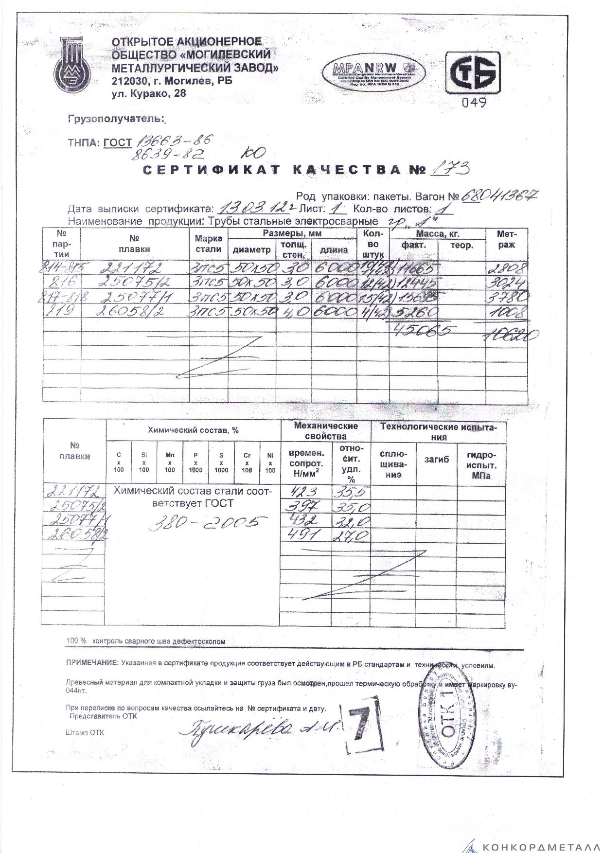 С каждой товарной позицией мы предоставляем все сертификаты и паспорта качества, а также товарно-транспортную накладную.