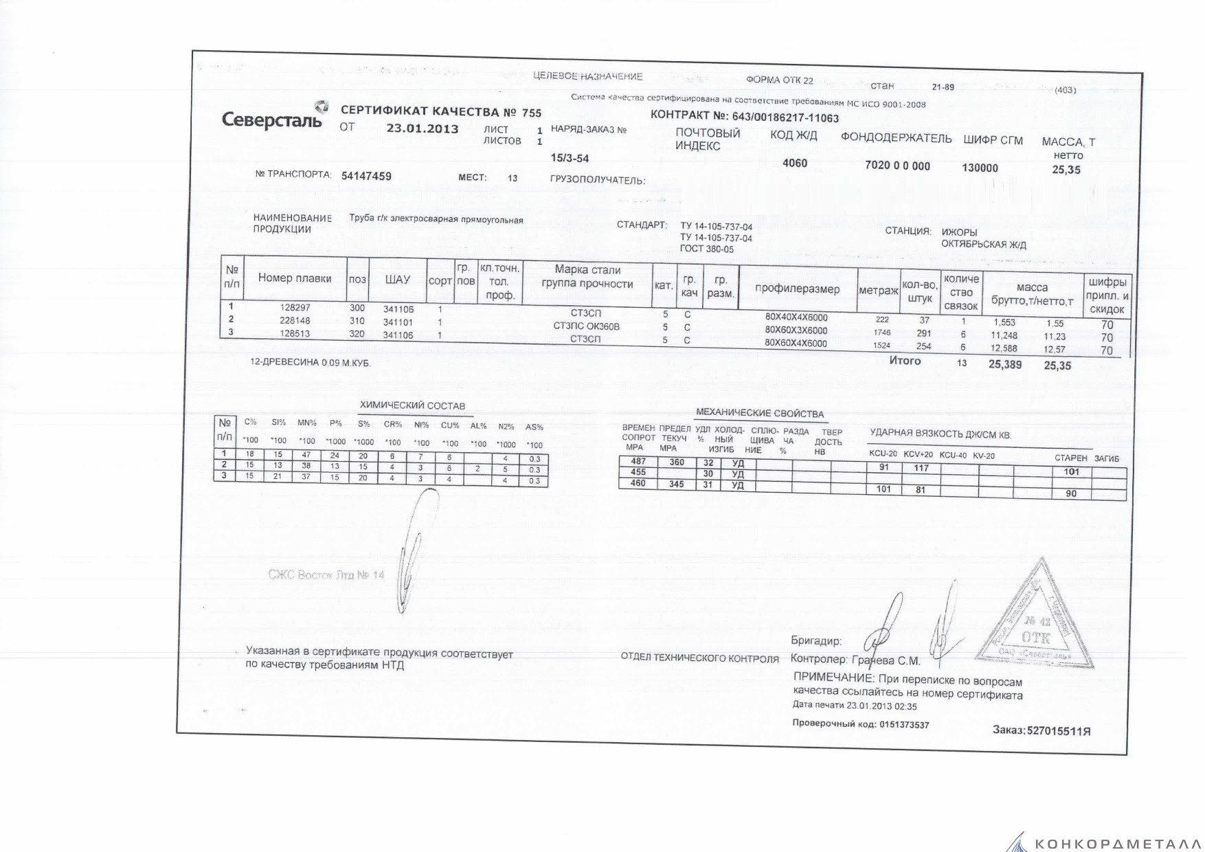 С каждой товарной позицией мы предоставляем все сертификаты и паспорта качества, а также товарно-транспортную накладную.