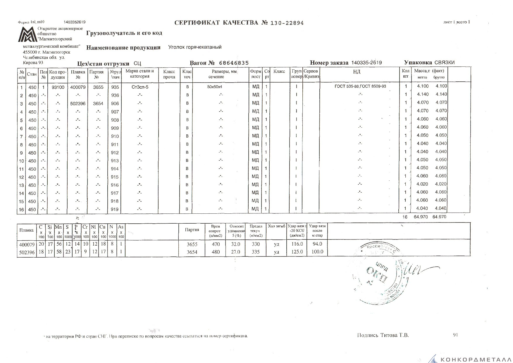С каждой товарной позицией мы предоставляем все сертификаты и паспорта качества, а также товарно-транспортную накладную.