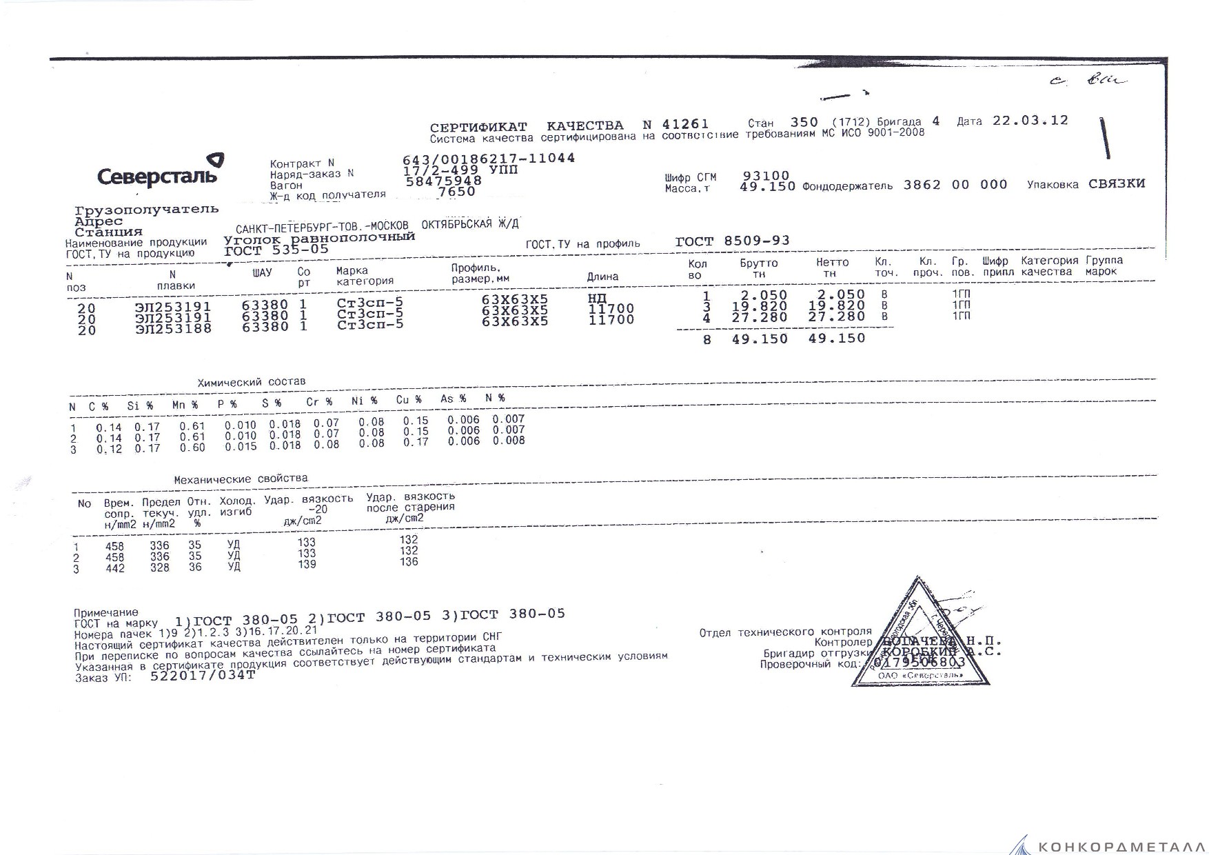 С каждой товарной позицией мы предоставляем все сертификаты и паспорта качества, а также товарно-транспортную накладную.