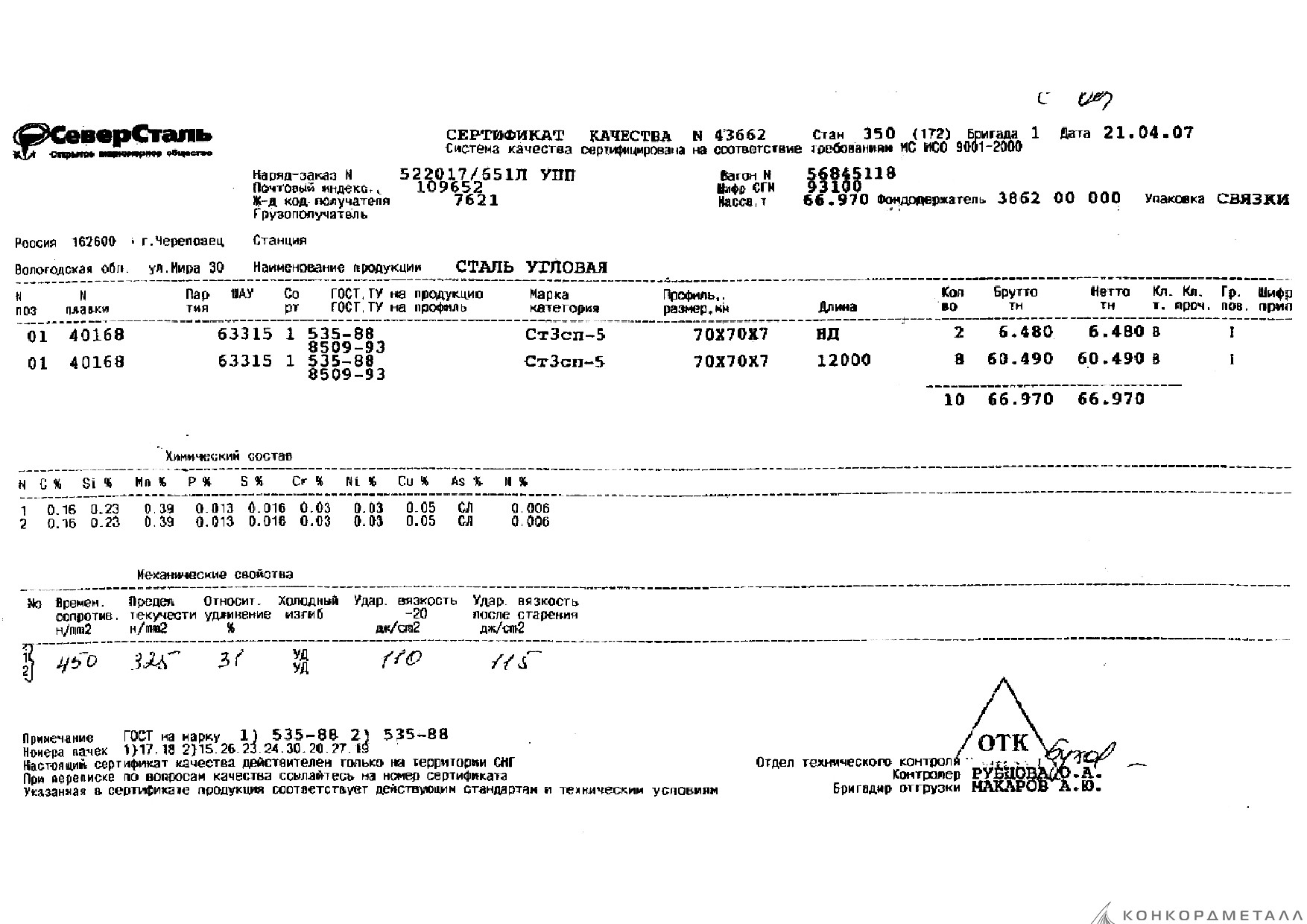 С каждой товарной позицией мы предоставляем все сертификаты и паспорта качества, а также товарно-транспортную накладную.